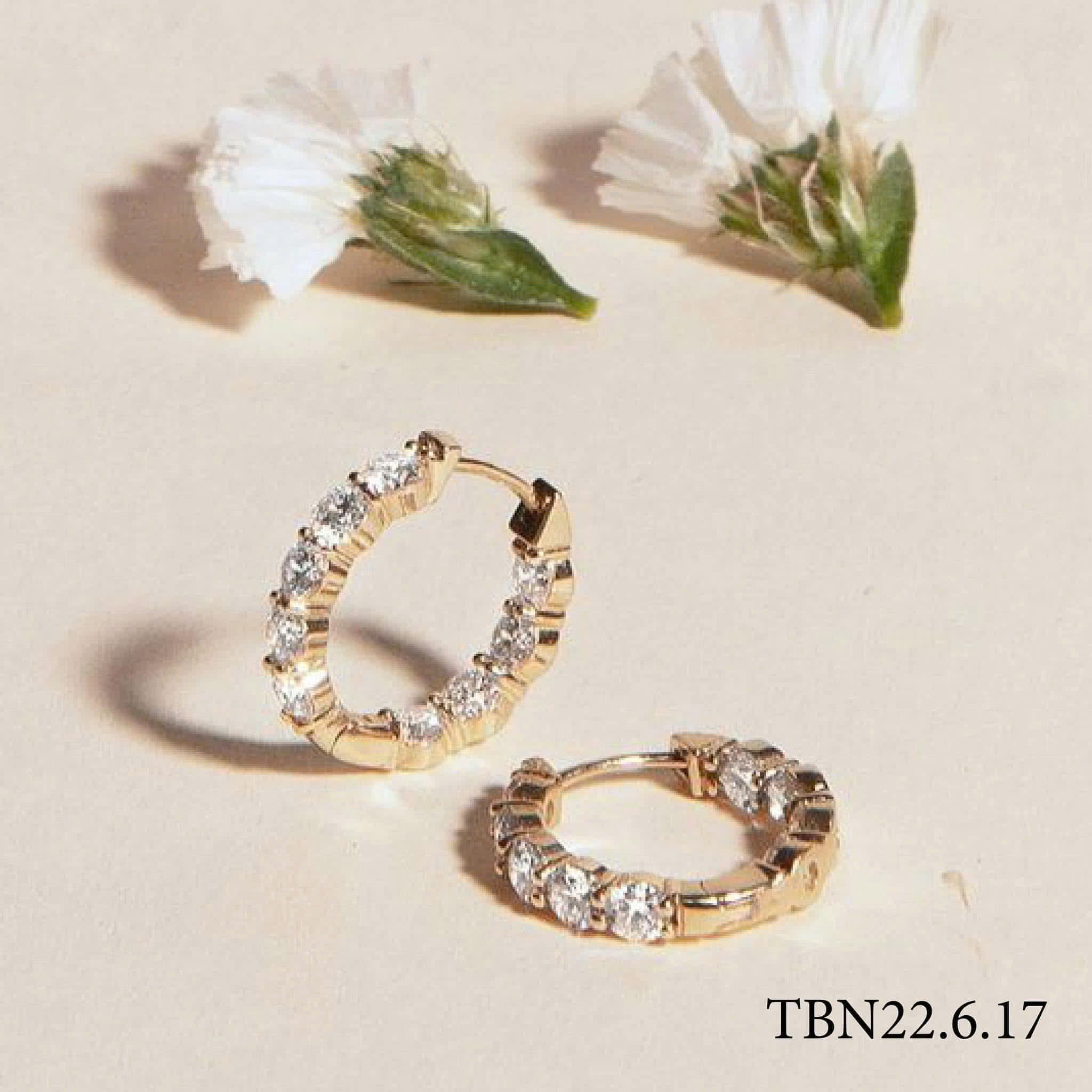 Bông tai vàng tròn hoặc hình giọt nước: giúp gương mặt rạng rỡ hơn khi kết hợp cùng mái tóc búi cao hay xoã tự nhiên.