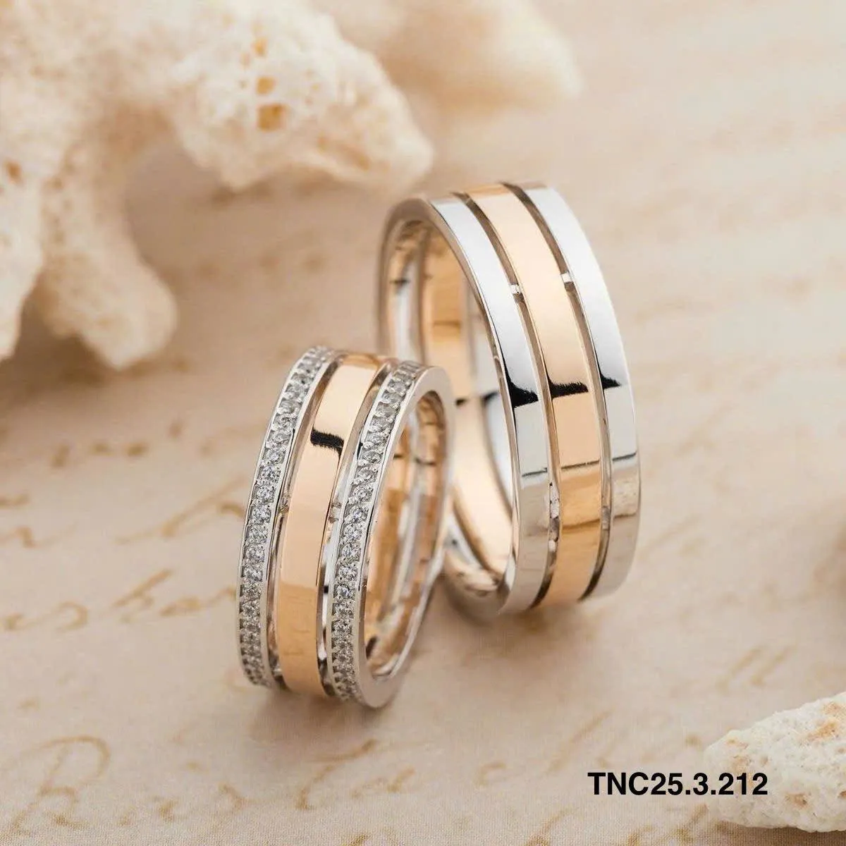 Mẫu nhẫn kỷ niệm ngày cưới vàng ghép 18k đính kim cương được yêu thích. Ảnh: Skymond Luxury