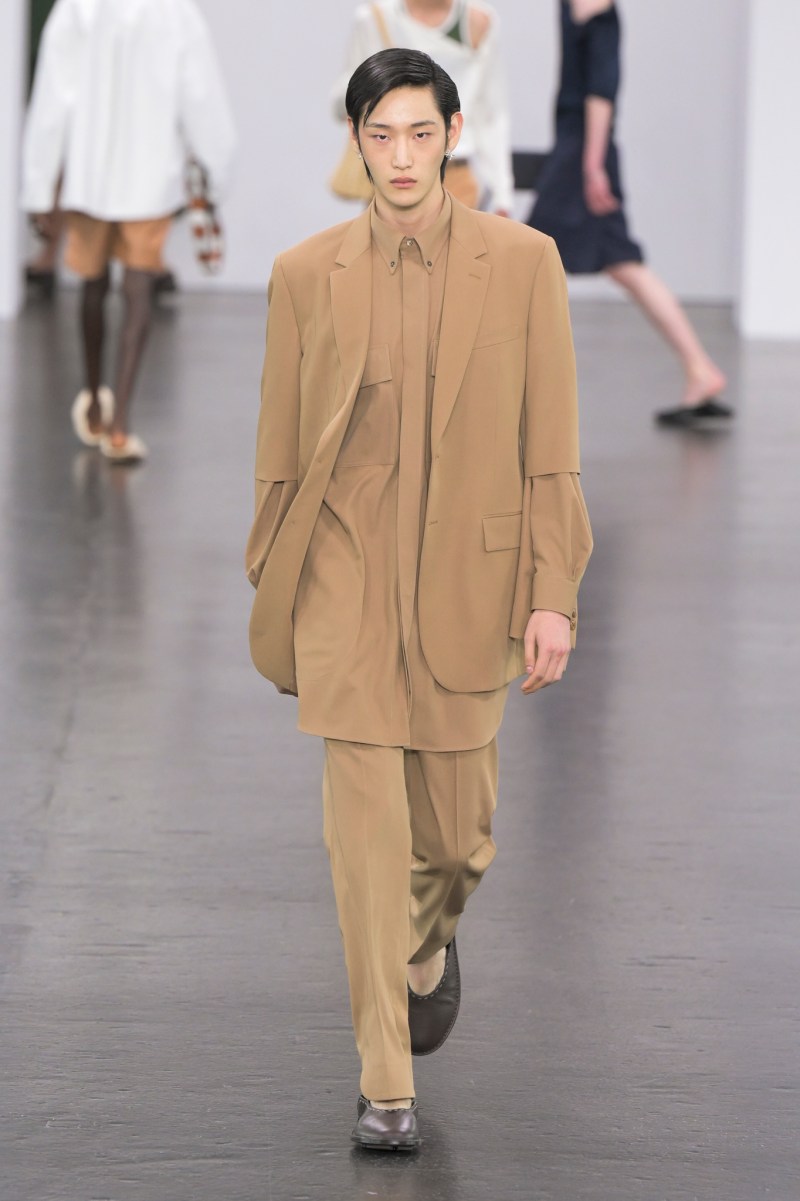 Phom dáng trang phục 2025 sẽ thiên về hai hướng: cứng cáp, đứng dáng hoặc tự do siêu thoải mái. Áo sơ mi không nhất thiết phải sơ vin, thậm chí có thể kết hợp với chiếc cà vạt siêu dài để tạo điểm nhấn độc đáo. Những bộ suit tôn vai, được may đo tỉ mỉ với gam màu trung tính như nâu và beige sẽ giúp quý ông trông vừa lịch lãm nhưng vẫn sành điệu.