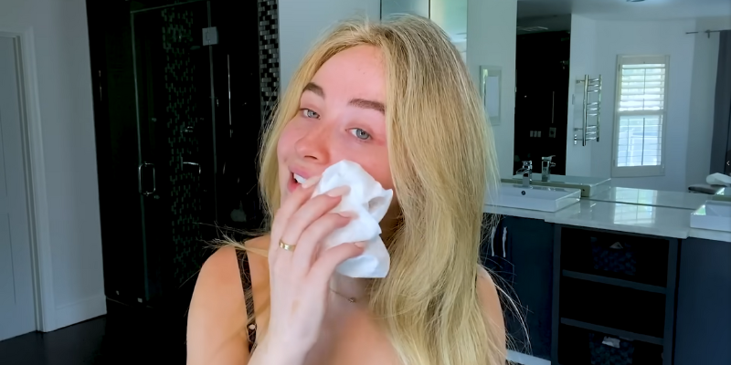 Khởi động cho buổi sáng đầy năng lượng, Sabrina Carpenter lựa chọn “ice cube” (phương pháp làm đẹp với nước đá) để đánh thức làn da sau một đêm dài.