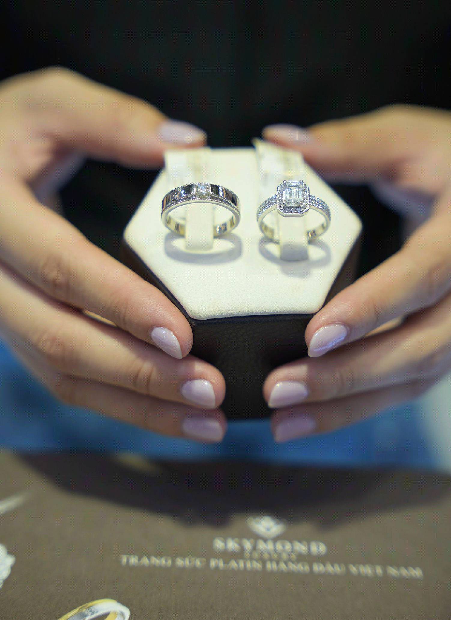 Tại Skymond, khách hàng có thể dễ dàng thiết kế nhẫn cưới theo ý tưởng riêng, kết hợp giữa vàng trắng, bạch kim hoặc các chất liệu cao cấp khác, cùng những viên đá quý hay kim cương lấp lánh. Từng chi tiết trên chiếc nhẫn đều được chế tác một cách tỉ mỉ bởi các nghệ nhân lành nghề, đảm bảo sự hoàn hảo từ hình dáng đến đường nét.