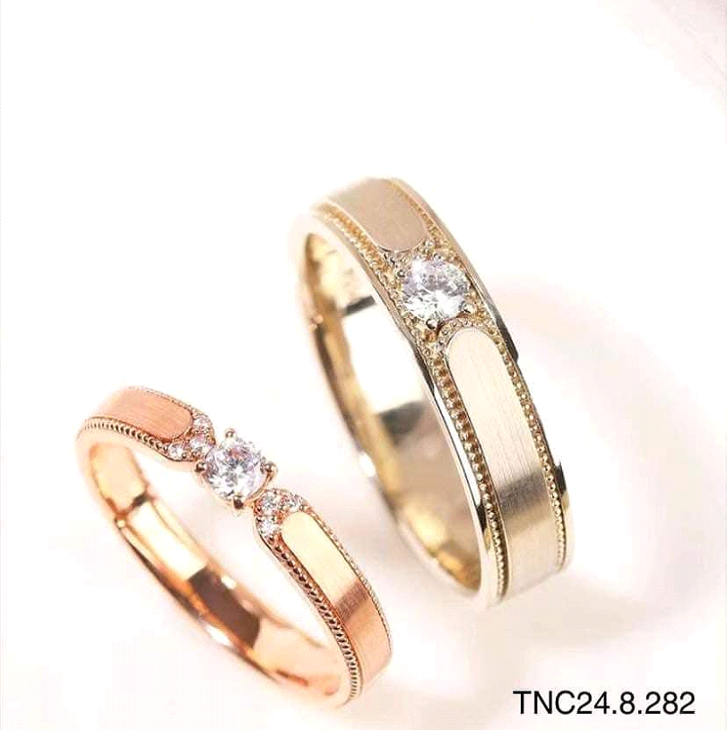 Với thiết kế cổ điển từ vàng hồng, kết hợp với những viên kim cương nhỏ nhắn đính khéo léo, thiết kế này thường được nhiều cặp đôi yêu thích