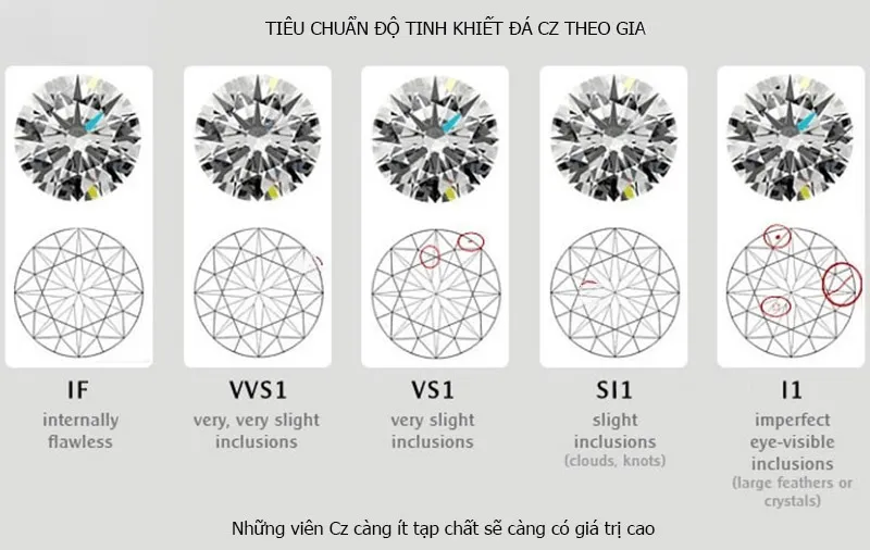 Trên thị trường năm 2026, đá CZ được chia thành nhiều cấp độ chất lượng. Để trả lời cho câu hỏi nhẫn cưới đính đá CZ có tốt không, bạn cần biết mình đang mua loại nào: