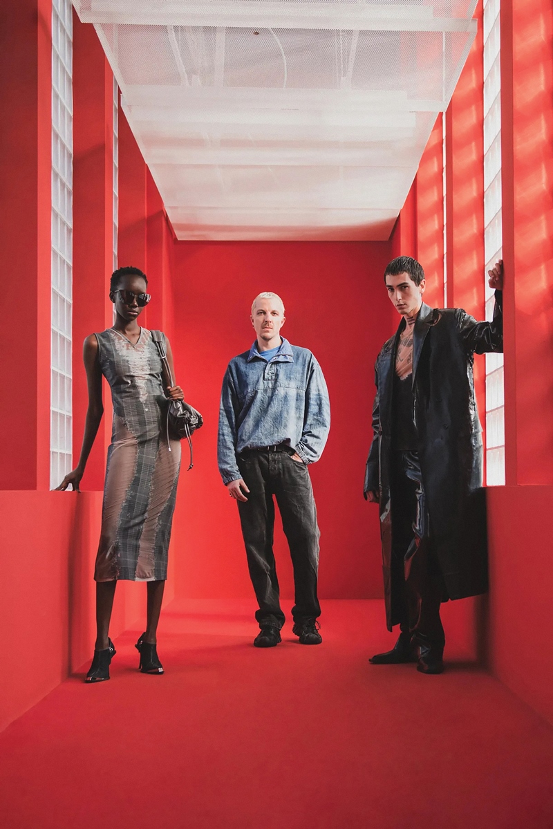 Diesel được biết đến là thương hiệu thời trang mang tinh thần nổi loạn và táo bạo, lấy denim làm dấu ấn nhận diện. Tiếp quản di sản của nhà mốt Ý từ năm 2020, Glenn Martens đã thử nghiệm nhiều biến thể không ngờ tới từ chất liệu quen thuộc này. Glenn tin rằng denim là chân dung của người mặc. Do đó, các thiết kế denim hoặc ngụy trang denim của anh luôn hướng tới triết lý này.