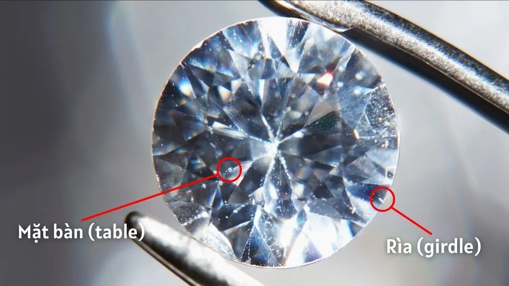 - Vết đen (Carbon): Một viên đá trắng tinh nhưng có một nốt ruồi đen ở giữa mặt bàn (Table) sẽ làm chiếc nhẫn cưới trông rất kém tinh tế.