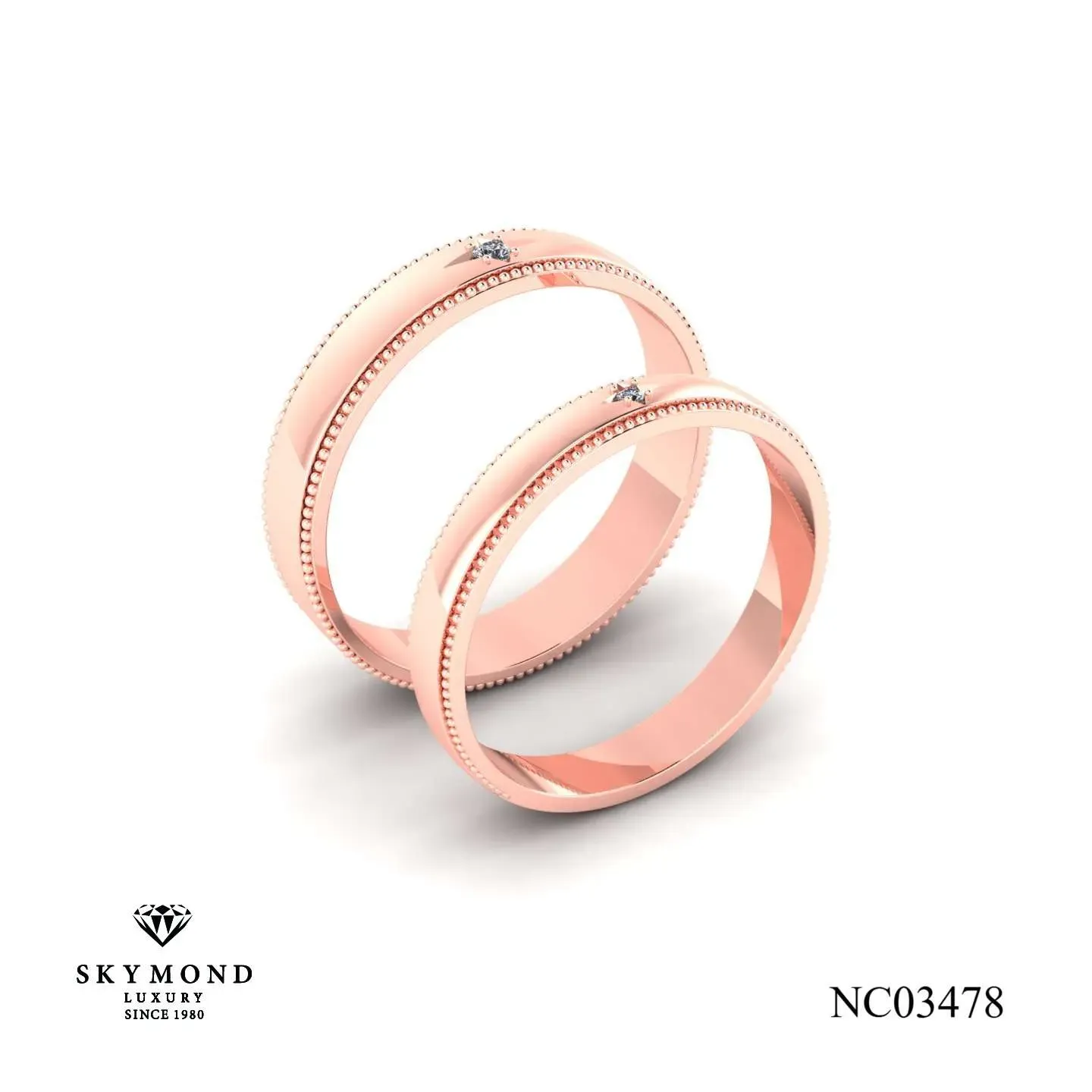 Tại những thương hiệu như Skymond Luxury, các mẫu nhẫn sử dụng công nghệ CNC thường có độ sắc nét và phản chiếu ánh sáng cực tốt dù không đính nhiều đá. Các đường cắt kim cương giả lập trên thân nhẫn tạo hiệu ứng lấp lánh như đang đeo hàng chục viên kim cương tấm, giúp bạn có cặp nhẫn cưới đẹp dưới 15 triệu mà vẫn vô cùng rực rỡ.
