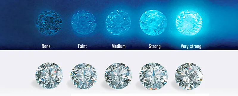 - Lựa chọn tối ưu: Đối với các nước màu cao như D, E, F, bạn nên chọn độ huỳnh quang là None hoặc Faint.