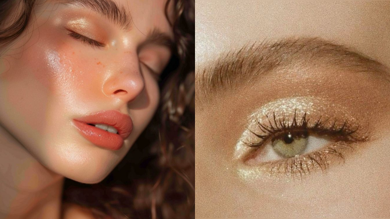 Golden and sunkissed: Kiểu trang điểm mắt “golden and sunkissed” tạo cảm giác như bạn vừa tận hưởng một ngày dài dưới mặt trời. Đầu tiên, hãy sử dụng kem che khuyết điểm để che đi các vết thâm, mụn hay quầng thâm. Để tạo hiệu ứng ửng hồng, dùng bronzer tán nhẹ lên bầu mắt và thoa phấn vàng kim. Để đôi mắt thêm phần lấp lánh, bạn có thể tô thêm nhũ ánh nâu đồng lên phần giữa bầu mắt và góc trong của mắt làm gợi lên sự ấm áp của ánh nắng chiều. Sự kết hợp hài hòa giữa các tông màu này là lựa chọn hoàn hảo cho các buổi tiệc hoặc các sự kiện ban ngày khi bạn muốn nổi bật mà không cần trang điểm quá cầu kỳ.