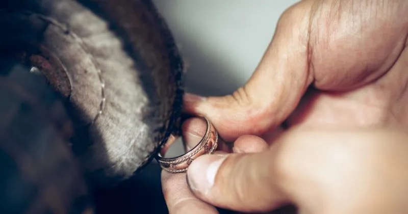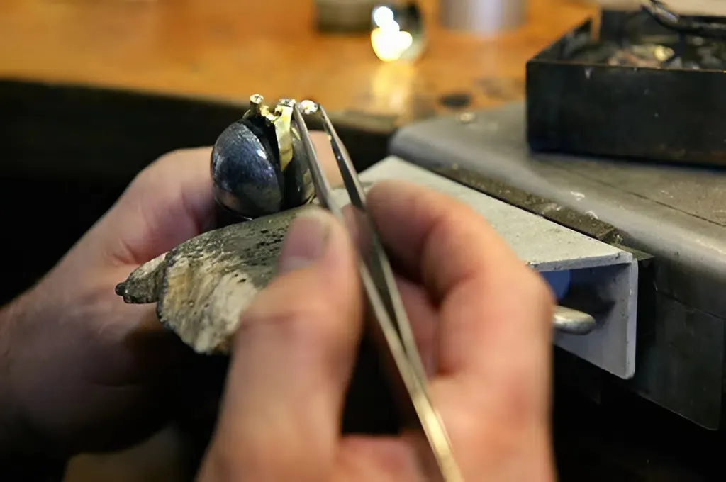 - Sử dụng bi cố định (Sizing Beads): Nếu chiếc nhẫn bản to vừa khớp tay nhưng lại quá lỏng ở phía trong, chúng tôi sẽ đính hai viên bi nhỏ bằng kim loại quý vào lòng nhẫn. Đây là kỹ thuật chuyên nghiệp giúp nhẫn không bị xoay vòng, giữ cho mặt đá chủ luôn hướng lên trên mà không cần phải cắt nhỏ size nhẫn gây đau khớp.