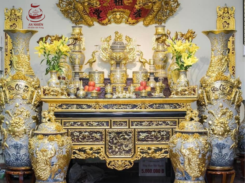 Cặp lộc bình men rạn dát vàng bên bàn thờ
