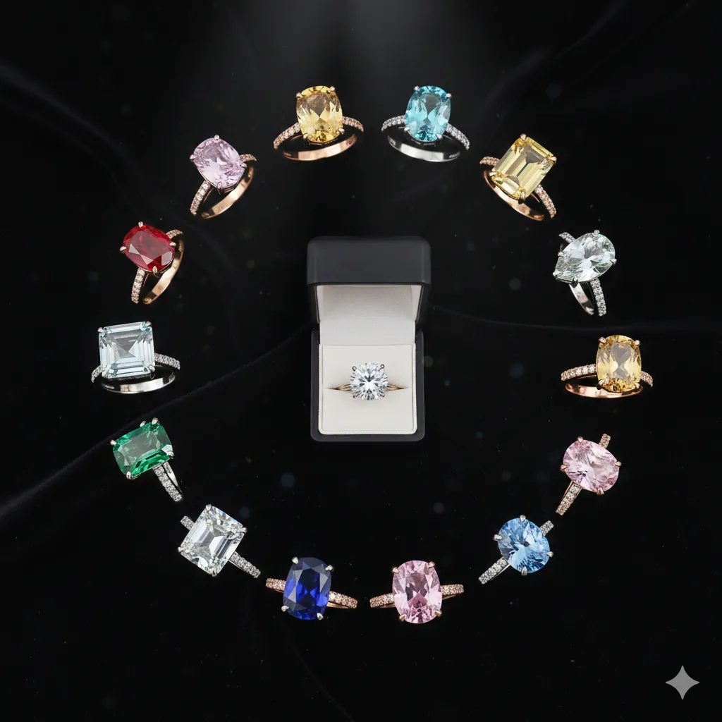 Bên cạnh kim cương trắng, xu hướng sử dụng Sapphire xanh, Ruby đỏ hay Emerald xanh lá để cầu hôn đang tăng cao. Mỗi màu đá mang một ý nghĩa phong thủy, cầu chúc cho năm mới thuận lợi và may mắn cho người đeo.